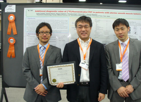 第58回北米核医学会(SNM)で、高エネ研と産婦人科の共同研究「F-18フルオロエストラジオールによる子宮肉腫と筋腫の鑑別診断」に関するポスターが、Oncology: Clinical Diagnostic Trackで1st Placeを受賞し、表彰されました。